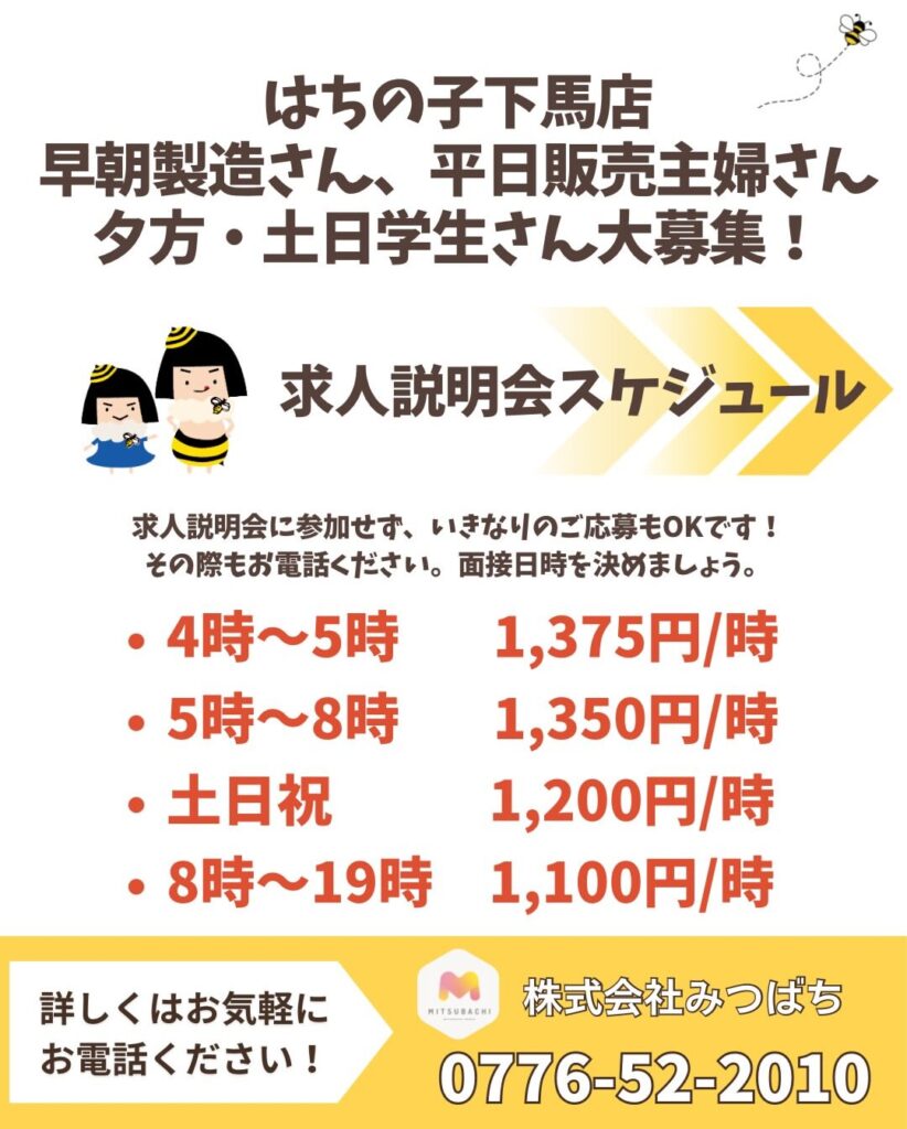 🐝🍞【はちの子 下馬店】求人説明会 開催中!✨🥐